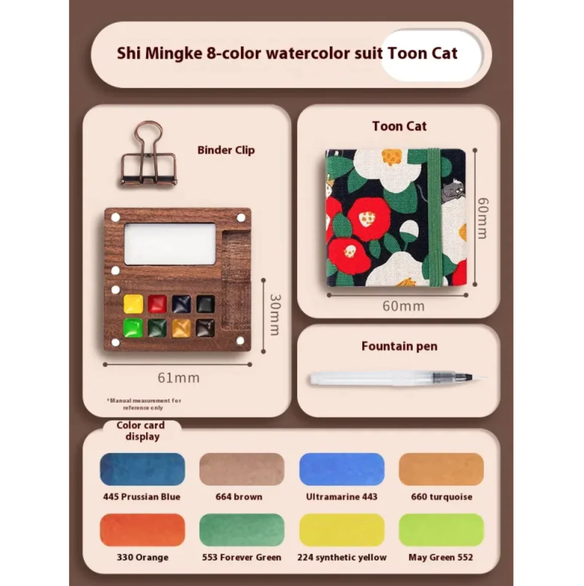 Portable Mini Walnut Watercolor Set with 8 Colors for Sketching & Journaling
